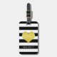 Personalisierte Schwarz-weiß Stripes Imitate Gold Heart Luggage Tag.