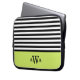 Trendy, chic, mädchenhaft, schwarz-weiß gestreiftes Muster mit einem limiengrünen Farbblock-Rahmen mit einer dreifach-monogramm-Vorlage, mit der Sie Ihre ersten, letzten und mittleren Buchstaben leicht personalisieren können.