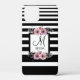 Schwarz-weiße Streifen Rosa Floral Monogramm Case-Mate iPhone Hülle