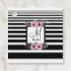 Schwarz-weiße Streifen Rosa Floral Monogramm Geschenkanhänger