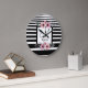 Schwarz-weiße Streifen Rosa Floral Monogramm Große Wanduhr