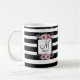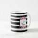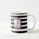 Schwarz-weiße Streifen Rosa Floral Monogramm Kaffeetasse
