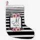 Schwarz-weiße Streifen Rosa Floral Monogramm Kleiner Weihnachtsstrumpf