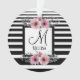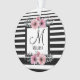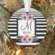 Schwarz-weiße Streifen Rosa Floral Monogramm Ornament