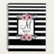 Schwarz-weiße Streifen Rosa Floral Monogramm Planer