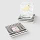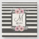 Schwarz-weiße Streifen Rosa Floral Monogramm Steinuntersetzer