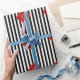 Schwarz-weiße Streifen, rotes Etikett Geschenkpapier