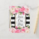 Schwarz-weiße Streifen Save the Date rosa Blütenfa Ankündigungspostkarte