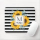 Schwarz-weiße Streifen Sonnenblumenmonogramm Mousepad