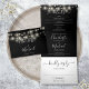Das Ganze in einer Schwarz-Weiß-Dreifach-Hochzeitseinladung mit hübschen Saitenlichtern und eleganter Typografie. Die Einladung beinhaltet Ihre Festgastinformationen und eine abnehmbare RSVP-Karte. Entwickelt von Thisisnotme©