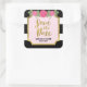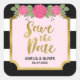 Diese eleganten, Save the Date quadratischen Aufkleber sind mit einem goldenen Rahmen aus Imitaten, schwarz-weißen Streifen und einigen rosa Rosen ausgestattet. Verwenden Sie es, um Ihre Save the Date Umschläge oder für die Dekoration Siegel. Karo die passende Save the Date-Karte hier in meinem Shop aus -> http://www.zazzle.com/black_white_stripes_roses_wedding_save_the_date_card-256251464667911838?rf=238364477188679314 Personalisiere sie mit deinen Daten, indem du den Platzhalter-Text ersetzt. Für weitere Optionen klicken Sie auf die Schaltfläche "Anpassen". *Bitte beachten Sie, dass das Zazzle-Wasserzeichen, das in der Zoomvorschau angezeigt wird, NICHT auf dem gedruckten Endprodukt erscheint. © Rosewood and Citrus
