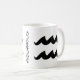 Wassermanntierkreissymbole, doppelseitiges Drucken mit vertikalem Text in der Mitte, klassische weiße Tasse. Ursprünglicher Entwurf für Sonnezeichen Wassermann der Wasser-Träger; verschiedene Tassenarten einschließlich Pendler-Tassen, mattierte Tassen und mehr. Macht ein großes Geschenk für selbst oder Ihren Lieblingswassermann! Sie können diesen Entwurf auch besonders anfertigen, um die Bilder, die Änderungs-Schriftartgröße, die Farbe, die Art oder die Orientierung die Größe neu zu bestimmen oder umzusetzen, Bildelemente zu addieren oder zu löschen, was auch immer Ihr Herz wünscht. Glücklicher Segen von glücklicher wünschender wohler Punkt-COM.