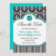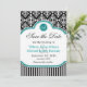 Schwarz-weiße türkisfarbene Hochzeit speichern das Save The Date