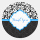 Schwarz-weiße und blaue Vintage BlumenDamasken Runder Aufkleber