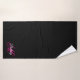 Ein gürteliges personalisiertes Monogramm mit einem extravaganten Kalligraphieskript, das in heiß rosa und weiß mit einem schwarzen Hintergrund in solider Farbe paart. Erstellen Sie Ihr eigenes hübsches Set mit Badetüchern für Ihr Studentenwohnheim. Passen Sie den Stil des Schriftartes oder die Farben an, um dem Lieblingsrosa Ihrer Tochter zu entsprechen. Der extravagante blüh, der Teil des Monogramms ist, muss möglicherweise für Ihre Initialzündung neu zentriert werden. Zurück-zur-Schule-Geschenk für Ihre Tochter, die zur Uni geht.
