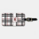 Ein klassisches und gemütliches kariertes Muster schafft eine stilvolle Drehung, indem eine klassische Kombination aus weißem Hintergrund und schwarz-grauem Bars mit einem kräftigen roten Akzent kombiniert wird. Passen Sie dieses Gepäckanhänger mit Ihrem ersten auf der Vorderseite und den Details auf der Rückseite an, damit Sie Ihr Gepäck leichter finden können, wenn Sie reisen.