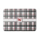 Ein klassisches und cozy kariertes Muster erhält eine stilvolle Drehung, indem es eine klassische Kombination eines weißen Hintergrundes mit den schwarzen und grauen Stangen mit einem Akzent des reichen Rotes kombiniert. Fertigen Sie das Monogramm mit der passenden Initiale für eine personalisierte Touch besonders an.