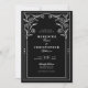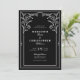 Schwarz-Weiß Vintage Hochzeit Einladung. Elegante Kalligraphie Drehbuch Art Nouveau verzierte Rahmen Hochzeitseinladung in klassisch, zeitlos weiß und schwarz.