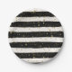 Schwarz-weiße Wasserfarben Streifen Gold Glitzer S Pappteller