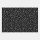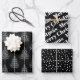 Schwarz-weiß Frohe Weihnachten, Bäume und Polka Punkte Urlaub Wrapping Paper Sheets. Das erste Blatt zeigt weiße Winterbäume auf schwarzem Hintergrund. Der zweite zeigt den Text :"Frohe Weihnachten" in fett gedruckter Typografie und der dritte zeigt Polka-Punkte-Schnee. Personalisieren Sie es mit Ihrem Text. Bitte beachten Sie, dass, wenn Ihr Text mehr oder weniger Platz benötigt, er so angepasst wird, dass er die Textgröße entsprechend vergrößert oder verringert.