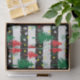 Schwarz-weiße Weihnachtsstreifen mit dekorativen Rot- und Grünbäumen mit weißem und gelb glänzendem Snowflake Gewebe Papier Oberfläche Muster. #christmas