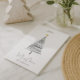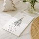 Weißer Hintergrund und ein von der schwarzen Hand gezeichneter Weihnachtsbaum mit einem gelben Stern. Frohe Weihnachten geschrieben mit einem trendigen Handgriff Stil Skript. Zurück: Fügen Sie Ihre Notiz und Ihre Namen hinzu.