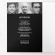 Einfaches modernes grafisches Beerdigungsprogramm in Schwarz/Weiß. Ersetzen Sie den Beispieltext und zwölf Platzhalter-Fotos durch Ihre eigenen Fotos und Gedenksortierung, Nachruf, Lesen oder Gedicht, Bestätigungen und persönliche Daten. Weitere passende Erinnerungsstücke für die Beerdigung sind erhältlich. Design: www.mylittleeden.com