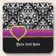 Schwarz-weißer Damast mit lila Band und Herz Getränkeuntersetzer