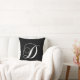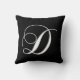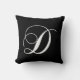 Schwarz-weißes Kissen des Monogramm-D. Dieser elegante Strudel-Schriftart wandelt Ihre Monogramminitiale in ein elegantes mit Monogramm Designerkissen um. Groß für Ihr Schlafzimmer, Lieblingsstuhl, als Spaßdekor in Ihrem Wohnzimmer oder formaler dekorativer Zusatz zu Ihrem Wohnzimmer. Fertigen Sie mit Ihrer Hintergrundfarbe besonders an. Für andere Buchstaben des Alphabetes treten Sie bitte mit MONOGRAMGALLERY in Verbindung. Elke Clarke©