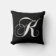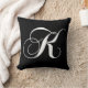 Schwarz-weißes Kissen des Monogramm-K. Dieser elegante Strudel-Schriftart wandelt Ihre Monogramminitiale in ein elegantes mit Monogramm Designerkissen um. Groß für Ihr Schlafzimmer, Lieblingsstuhl, als Spaßdekor in Ihrem Wohnzimmer oder formaler dekorativer Zusatz zu Ihrem Wohnzimmer. Fertigen Sie mit Ihrer Hintergrundfarbe besonders an. Für andere Buchstaben des Alphabetes treten Sie bitte mit MONOGRAMGALLERY in Verbindung. Elke Clarke©