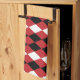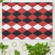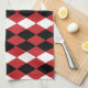 Schwarz-weißer geometrischer Diamant auf rotem Hin Geschirrtuch