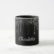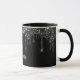 Eine elegante, mädchenhafte und glänzende Tasse. Ein schicker schwarzer Hintergrund mit Imitaten Glitzer Tropfen, Farbe Tropfausdruck. Personalisieren und fügen Sie Ihren Namen mit einem handgeschriebenen Stil Skript geschrieben. Weiße Buchstaben.