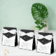 Diese Schwarz-Weiß-Gefälligkeitsboxen sind mit einem durchgehenden Doodle-Druck mit charmanten, handgezeichnet Elementen zu Schule und Abschluss geschmückt. Die Vorderseite jedes Kastens zeigt stolz die Meldung "Glückwunsch graduate" in einem niedlichen handgeschriebenen Skript, während die Rückseite mit einem herzlichen Dank an Sie Nachricht und Ihre Signatur anpassbar ist. Diese stilvollen und durchdachten Vorzugsboxen werden Ihren Gästen einen bleibenden Eindruck verließe, denn sie teilen sich diesen besonderen Meilenstein. (Anmerkung: Das Muster ist bei geschlossener Frontklappe rechts nach oben und das Muster an den Seiten und zurück nach unten nach unten. © Kimbellished, LLC