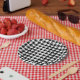 Schwarz-weißer Karo des klassischen Hahnentrittmus Pappteller