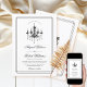 Eleganter schwarz-weißer Kronleuchter Altes Geld formelle Hochzeitseinladung. Eine elegante, schwarz-weiße Kronleuchter-Thematisierung, die mit einer Touch zeitloser Eleganz für eine formale Ästhetik des Alten Geldes entworfen wurde. Die Einladung enthält ein Vintages Kronleuchter-Motiv und Ihren personalisierten Text, der durch einen dreifach schwarzen Rahmen schön gerahmt ist. Auf der Rückseite enthält es einen komfortablen QR-Code, der es den Gästen ermöglicht, mühelos online zu UAWG und weitere Details über die Veranstaltung zu erhalten. Dieses durchdachte Produkt verbindet Tradition mit moderner Praxisnähe und sorgt für einen unvergesslichen ersten Eindruck für Ihren besonderen Tag.
