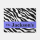 Setzen Sie die Begrüßungsmatte für Ihre Zuhause mit dieser stilvollen, raffinierten, schwarz-weiß zebrafarbenen Türmatte personalisiert mit Ihrem Namen. Diese Türmatte ist mit einem Namen versehen, der in ein Wort geändert werden kann. Ein lila Periwinkle-Lavendel-Streifen gibt einen Raum für Personalisierung und einen Pop Farbe. Genießen Sie dieses beliebte und zeitgenössische Design, das einen trendigen Zuhause-Dekorationsakzent hinzufügen wird. Dieses Design ist in verschiedenen Farbkombinationen in diesem Laden erhältlich. Anpassbar, um es zu Ihrem oder für ein Geschenk zu machen!