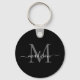Einfache Schwarz-weiße Monogram Elegant Moderner Script-Schlüsselanhänger