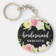 Stilvoller individuelle Name überragender Schlüsselanhänger mit einem rosa und gelben, blumengeschmückten Rahmen und schwarzem Hintergrund. Unterhalb der eleganten Kalligrafie handgeschriebene Bridesmaid-Grafik ist eine Vorlage, in der Sie den Namen Ihrer Brautjungfrau hinzufügen können. Eine niedliche Ergänzung zu einem Briefkasten für Braut.
