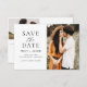 Moderner und eleganter Landschaft Horizontal Vier (4) Foto QR Code Save the Date Hochzeitsmagnet mit handgeschriebener Schrift Typografie. Der Save the Date einladende Magnet beinhaltet Skripttypografie und schick und schlichtes Design, mit dem Sie Ihre individuelle Verlobung Fotografie hinzufügen können.