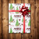 Das wiederholte Muster auf diesem niedlichen Weihnachtsverpackungspapier ist ein Bild eines bezaubernden Schwarz-Weiß-Parti-Farbes Cocker Spaniel, der eine rot-weiße Weihnachtsmannmütze trägt. Der Hund sitzt neben einem geschmückten Weihnachtsbaum unter hellen Geschenkpackungen. Ein Stiervogel landet auf dem Baum dahinter. Stilisierter, roter und schwarzer Büffel karierter Text sagt MERRY CHRISTMAS", und Ihre eigene Unterschrift ist in zwei Bereichen für Sie individuell.