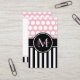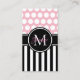 Schwarz-weißer Streifen Polka Dot Pale Pink Monogr Visitenkarte