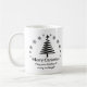 elegante Weihnachtsfeier-Tasse. Die Tasse ist mit einem schwarz-weißen Weihnachtsbaum mit Schneeflocken ausgestattet und enthält eine Urlaubsbotschaft, die Sie individuell gestalten können.