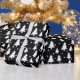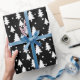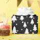 Dieses Verpackungspapier weist ein Muster aus weißen Bäumen und weißen Punkten auf einem schwarzen Hintergrund auf. Ideal für Urlaub oder Winter im Allgemeinen.