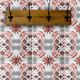 Diese Keramik ist eine beeindruckende Mischung aus traditionellem und modernem Stil. Das Design ist ausgewogen und komplex, es zeigt lebendige rote Formen, die in weißem Set gegen eine graue Leinwand umrissen sind. Das Muster, das eine Verschmelzung von Blumen und abstrakten Elementen zu sein scheint, erzeugt einen visuell überzeugenden Effekt. Das Design besteht aus vier identischen Sektionen, die sich in der Mitte der Kachel konvergieren und ein Gefühl von Gleichgewicht und Einheit verleihen. Der graue Hintergrund mit seinen verschiedenen Farbtönen fügt dem Gesamtdesign eine Ebene der Tiefe hinzu. Mit seiner einzigartigen Farbpalette und dem komplexen Muster strahlt diese Kachel eine Mischung aus klassischem Charme und zeitgenössischer Eleganz aus. Es ist ein bemerkenswertes Kunstwerk, das jeden Raum mit seinem verführerischen Design bereichern kann.