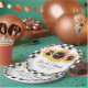 Schwarz-weißes Buffalo Karierte Sonnenblumenhochze Pappteller