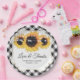 Schwarz-Weiß-Büffel karierte Blumenzettel-Teller mit sonnigen Blume und Lichtern auf schwarz-weiß karierten Hintergrund. Matching Artikel zur Ergänzung dieser rustikalen Blumenzettel Teller. Diese Teller lassen sich leicht an jeden Anlass anpassen.