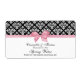 Schwarz-Weiß Damask, Pink Satin Look Bow - Wasser Flaschenetikett / Wine Bottle Label Elegant, schicke und stilvolle Party Accessoires mit einem Damast-Muster und einem rosa Satin Look Bogen. Dieses Produkt ist Teil einer Reihe von passenden Designs, die für viele Anlässe und Veranstaltungen leicht anpassbar sind. Wenn Sie separate RSVP-Karten benötigen, Dankeschön, Briefmarke, Magnete, Flaschenetiketten, Menüs, Begleitkarten, Veranstaltungsprogramme, Günstige Tags oder anderes Zubehör, bitte Karo unsere anderen Listen heraus. Wenn Sie kein passendes Produkt sehen, an dem Sie interessiert sind, oder dieses Design in verschiedenen Farben sehen möchten, kontaktieren Sie uns bitte und wir freuen uns auf Ihren Besuch. Bitte beachten Sie, dass es sich um ein grafisches Design/Foto handelt, das auf das zugrunde liegende Produkt übertragen wird und keine Stoffe, Bänder, Metalle, Ätzungen, Edelsteine oder Prägungen enthält. 2013 ©itsMyPartyDesigns Alle Rechte vorbehalten