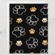 Dieser niedliche Pfotendruck ist für Liebhaber von Haustieren überall ideal. Der schwarze Hintergrund und die weißen und goldenen Pfoten zeichnen sich durch ein verstreutes Muster aus.