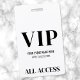 Alle Zugang modernen weißen Hintergrund Schwarz Schriftart VIP-Abzeichen. Ideal für Modenschauen, Konzerte, Konferenzen, Lautsprecher oder jede besondere Veranstaltung, bei der Sie gewollt haben, um den Gästen das Gefühl zu geben, sich zu fühlen - inklusive Geburtstagspartys. Dieses Abzeichen zeichnet sich durch ein gepflegtes und modernes Design mit weißem Hintergrund und schwarzen Schriftart aus. Unten wird "VIP" in einem fett formatierten Serif-Schriftart angezeigt, gepaart mit einfacher Typografie für den Ereignisnamen, das Datum und "Alle Zugriffe". Vollständig anpassbar, können Sie Text, Schriftart und Farben an Ihre Bedürfnisse anpassen.