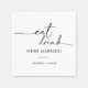 Dieses Schwarz-weiße Essgetränk, das wir verheiratet sind, servieren Servietten für eine rustikale Hochzeit. Das einfache und elegante Design zeichnet sich durch klassische und extravagante Schriftzeichen in Schwarz und Weiß aus. Machen Sie diese Servietten zu sich selbst, indem Sie die Namen der Braut, Bräutigam und Hochzeitstag eintragen. Diese Servietten können einen Hochzeitsempfang, ein Abendessen mit Probe, eine Verlobungsfeier und vieles mehr ergänzen!